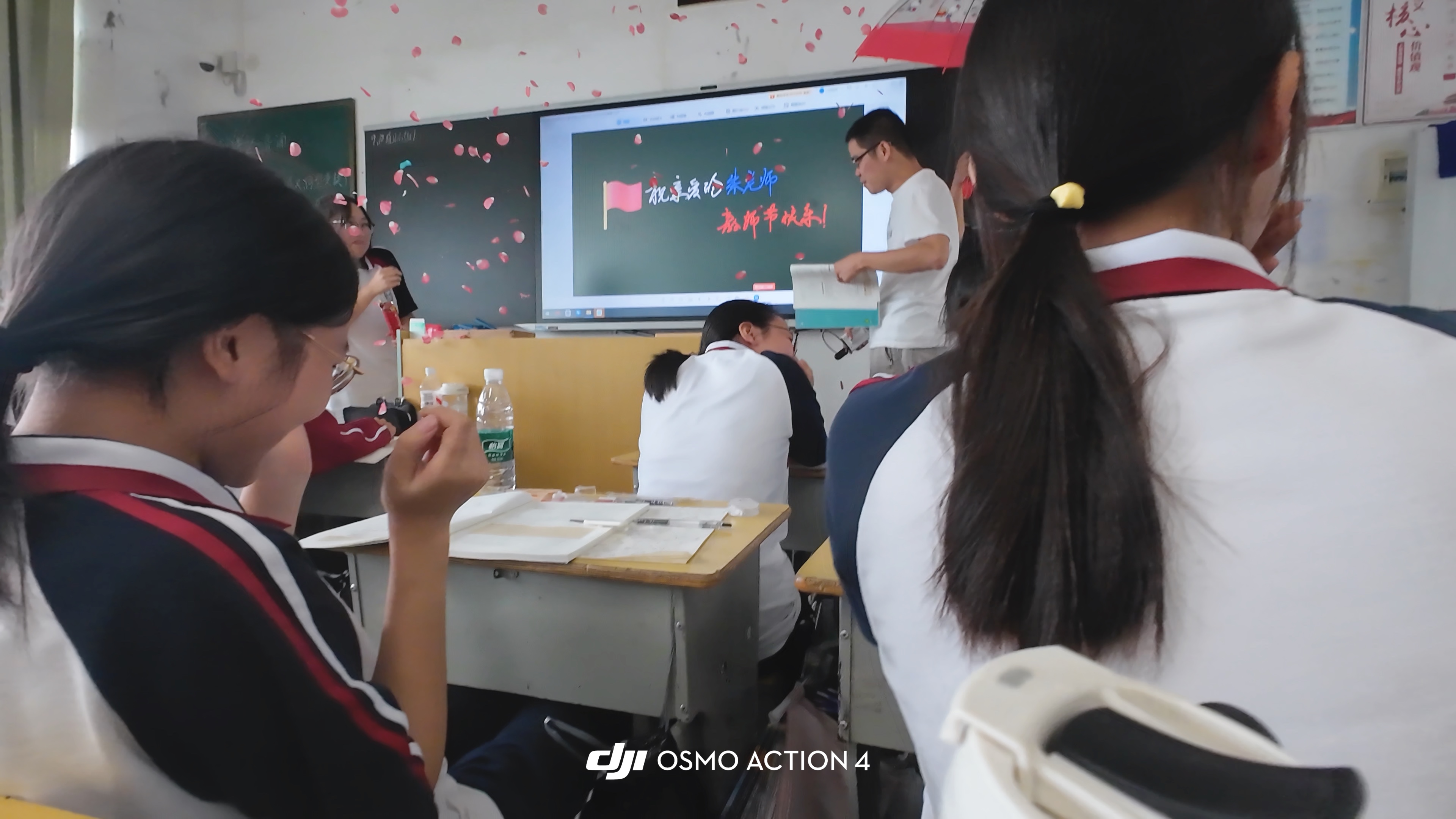 随着9月10日第41个教师节的到来,我班经班委会讨论和全体同学商议决定,自发进行教师节的庆祝活动。我们选择了简单的庆祝形式,保证在不影响教学效率的情况下完成所有环节。