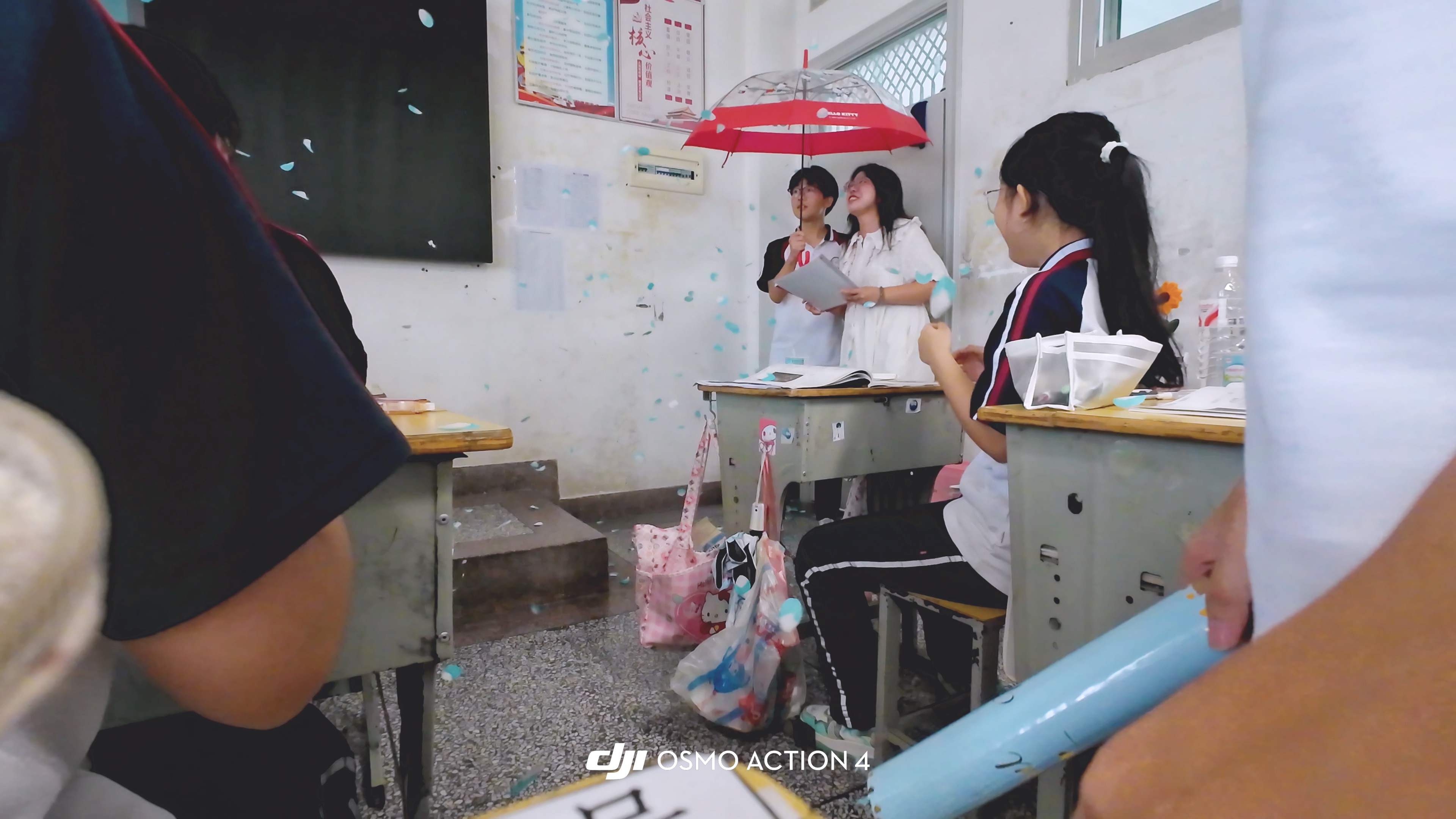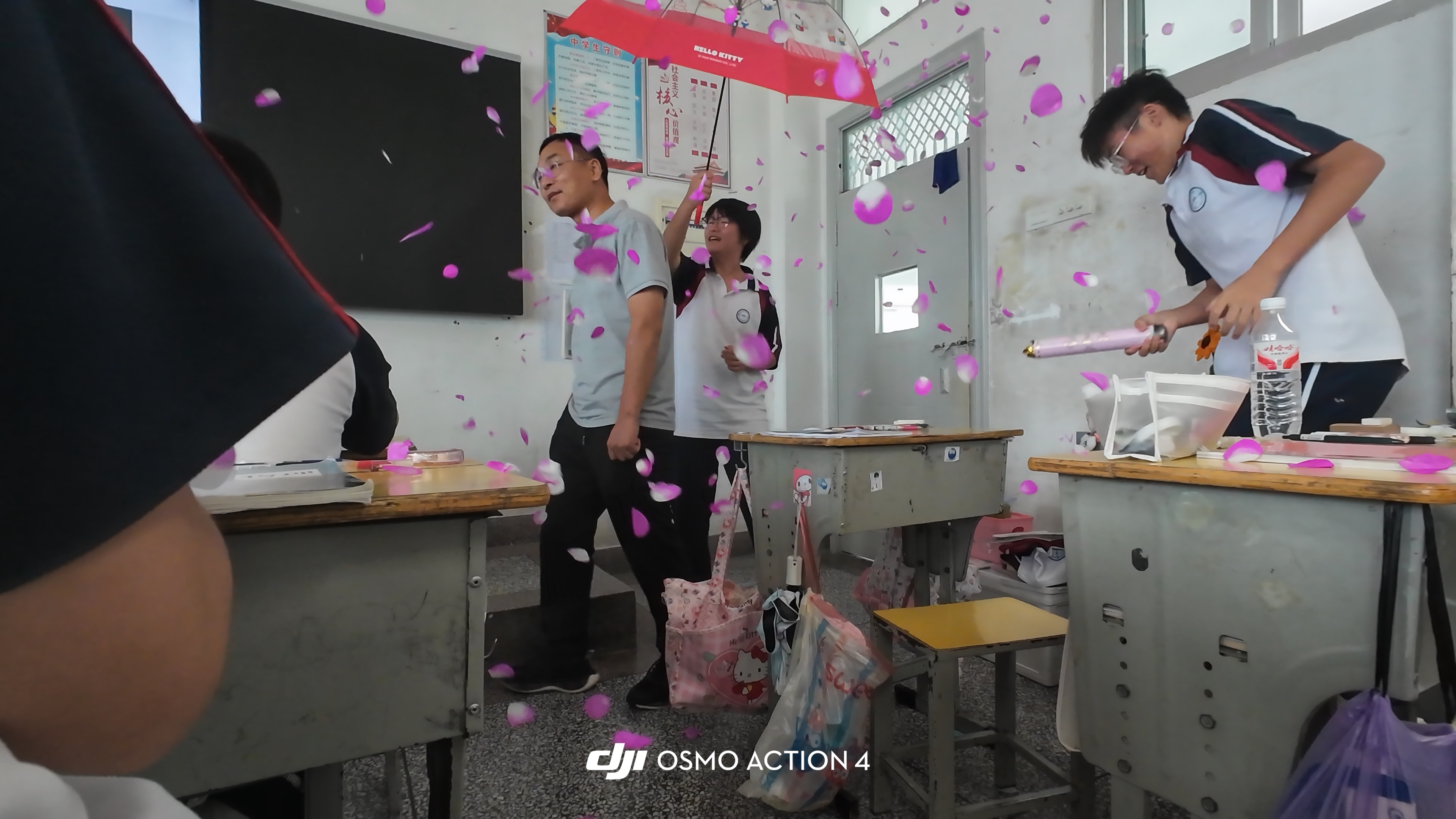 早餐时间对白板,教室后黑板进行了简单、快速装饰,确保活动的保密性